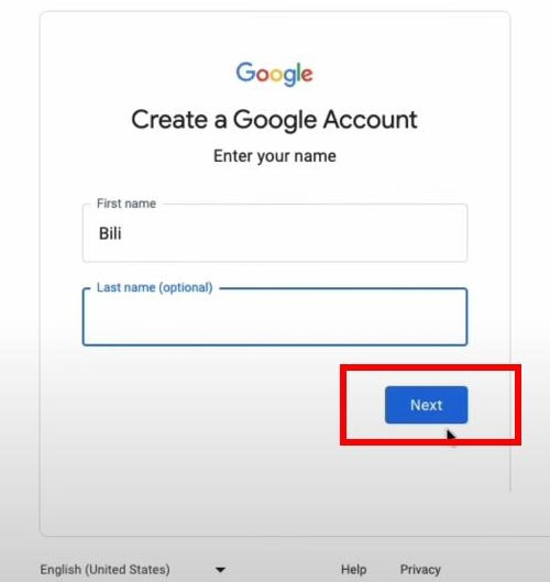 3、这里输入你的名字和姓氏,随便填,然后点击下一步按钮。