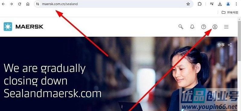 1、浏览器访问sealandmaersk官网网址,进入有点击右上角的头像,即可进入登录页面。