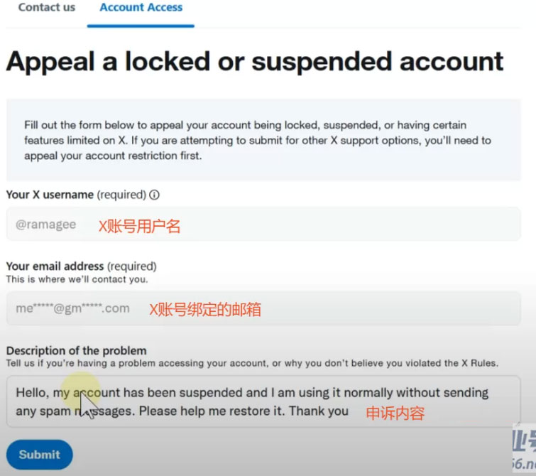 申诉内容的填写,这个是重点,大家需要填写英文,不要填写中文,因为审核的人员是外国人。